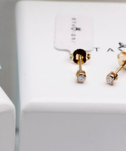 Klasyczne kolczyki z żółtego złota próby 0,585 z subtelnymi brylantami o łącznej masie 0,10 ct to ponadczasowa elegancja w najlepszym wydaniu. Kamienie zostały oprawione w gładką, pełną oprawę, która podkreśla ich naturalny blask i chroni przed uszkodzeniami. Prosty, a zarazem niezwykle stylowy wzór sprawia, że kolczyki te idealnie sprawdzą się zarówno na co dzień, jak i jako dodatek do bardziej formalnych stylizacji.