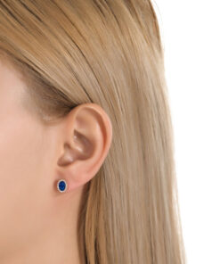 Owalne kolczyki złote z szafirami i brylantami
