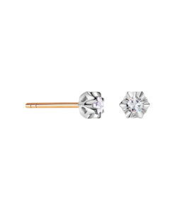 Subtelne kolczyki z dwukolorowego złota próby 585, w których żółte złoto idealnie komponuje się z białym. Ozdobna korona z białego złota pięknie eksponuje brylantowe diamenty o łącznej masie 0,20ct, nadając kolczykom szlachetnego blasku i ponadczasowej elegancji. Ten klasyczny wzór w formie delikatnej rozetki podkreśli naturalne piękno i wyjątkowy styl każdej kobiety. Doskonały wybór zarówno na co dzień, jak i na specjalne okazje.