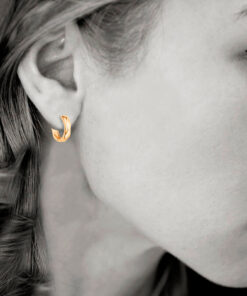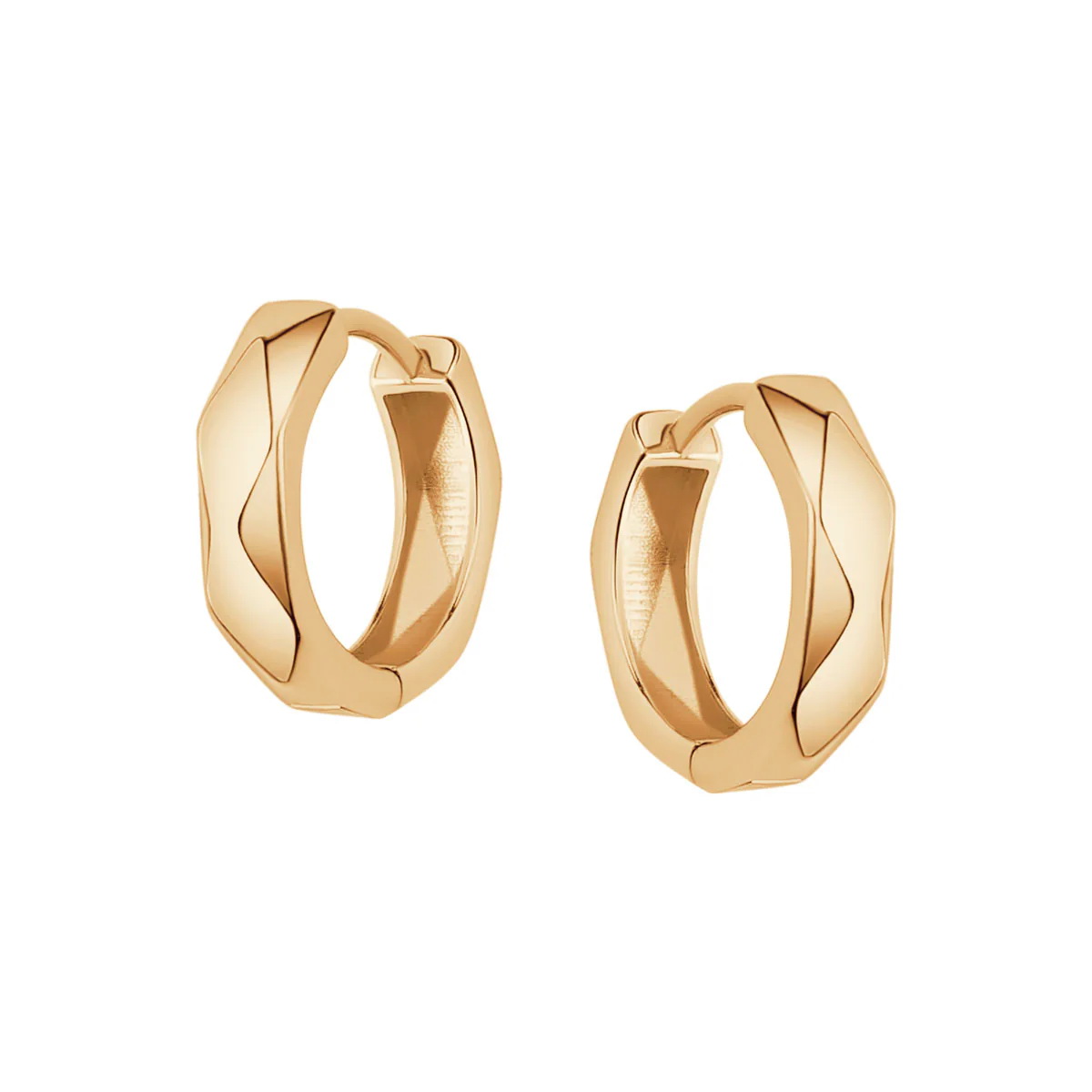 Nowoczesna odsłona klasycznych kół, wykonana z najwyższej próby srebra 925 pokrytego warstwą żółtego złota. Powierzchnia kolczyków została ozdobiona unikalną, fasetowaną strukturą, która tworzy intrygujący efekt geometryczny i sprawia, że biżuteria efektownie lśni pod każdym kątem. Szeroka, nieregularna szyna nadaje im wyrazistego charakteru, zachowując jednocześnie pełną elegancji lekkość. Wyposażone w praktyczne i stabilne zapięcie typu walizka, stanowią idealny wybór dla kobiet poszukujących biżuterii typu „basic” z nowoczesnym sznytem.