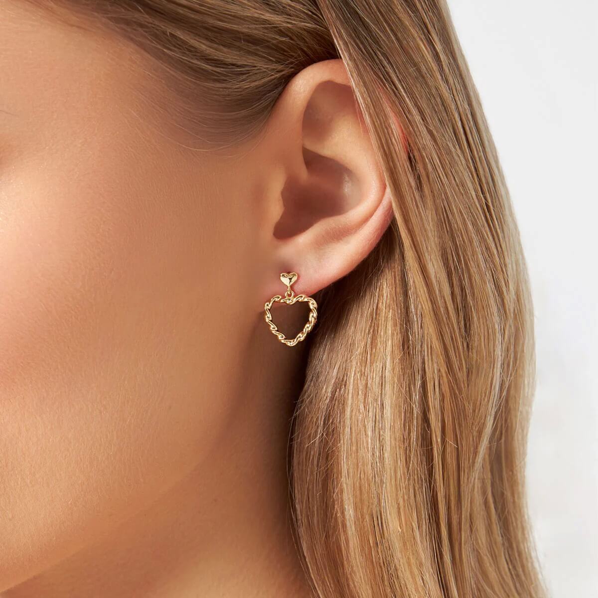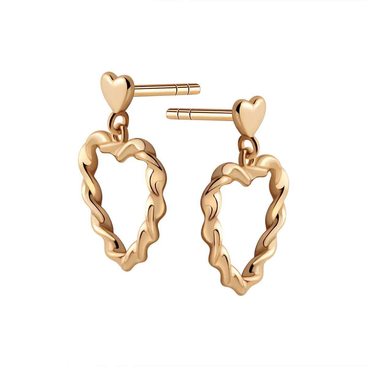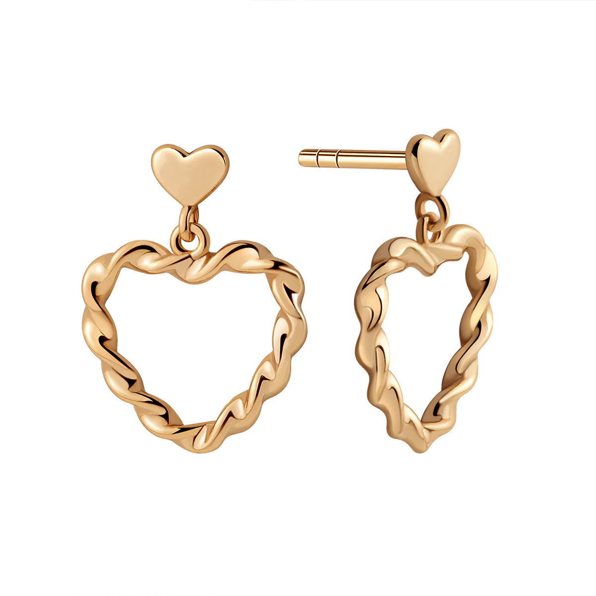 Kolczyki serca skręcane i wiszące | srebro pozłacane 925 – KKS56311Y