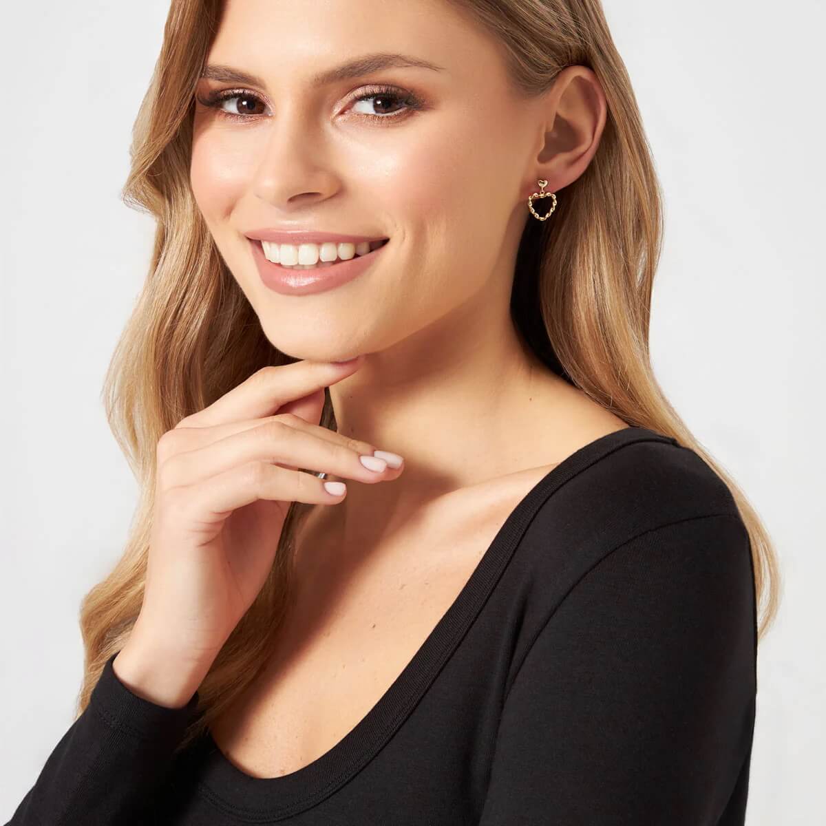 Wyjątkowe kolczyki wykonane z najwyższej próby srebra 925, pokrytego warstwą ciepłego, żółtego złota. Model zachwyca oryginalną kompozycją – subtelny sztyft w kształcie pełnego serca podtrzymuje większy, ażurowy element o efektownej, skręconej formie. Ta trójwymiarowa struktura pięknie pracuje ze światłem, nadając biżuterii blasku i nowoczesnego charakteru. Dzięki lekkości i romantycznemu designowi, kolczyki te są idealnym wyborem dla kobiet pragnących podkreślić swoją delikatność. To niezwykle kobiecy dodatek, który sprawdzi się zarówno jako element codziennego stroju, jak i czarujący upominek dla bliskiej osoby.