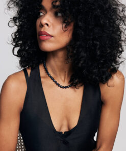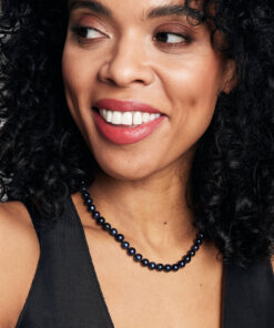 Elegancki naszyjnik z naturalnych słodkowodnych pereł hodowanych w intrygującym, czarnym odcieniu pięknie podkreśla linię szyi i dekolt. Każda perła zachwyca delikatnym połyskiem, tworząc klasyczną kompozycję, która dodaje szlachetności zarówno codziennym, jak i wieczorowym stylizacjom. Całość uzupełnia subtelne zapięcie ze srebra rodowanego próby 0,925, które dodaje biżuterii blasku i chroni ją przed matowieniem. To idealny wybór dla kobiet ceniących ponadczasową elegancję w nowoczesnym wydaniu. Do kompletu dostępna jest bransoletka z czarnymi perłami, model BSN6713.