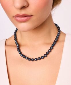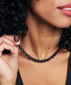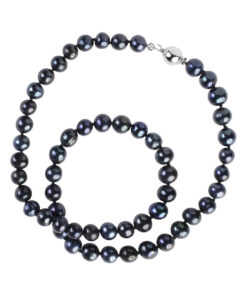 Naszyjnik srebrny z czarnymi perłami 7-9mm – NSN6713