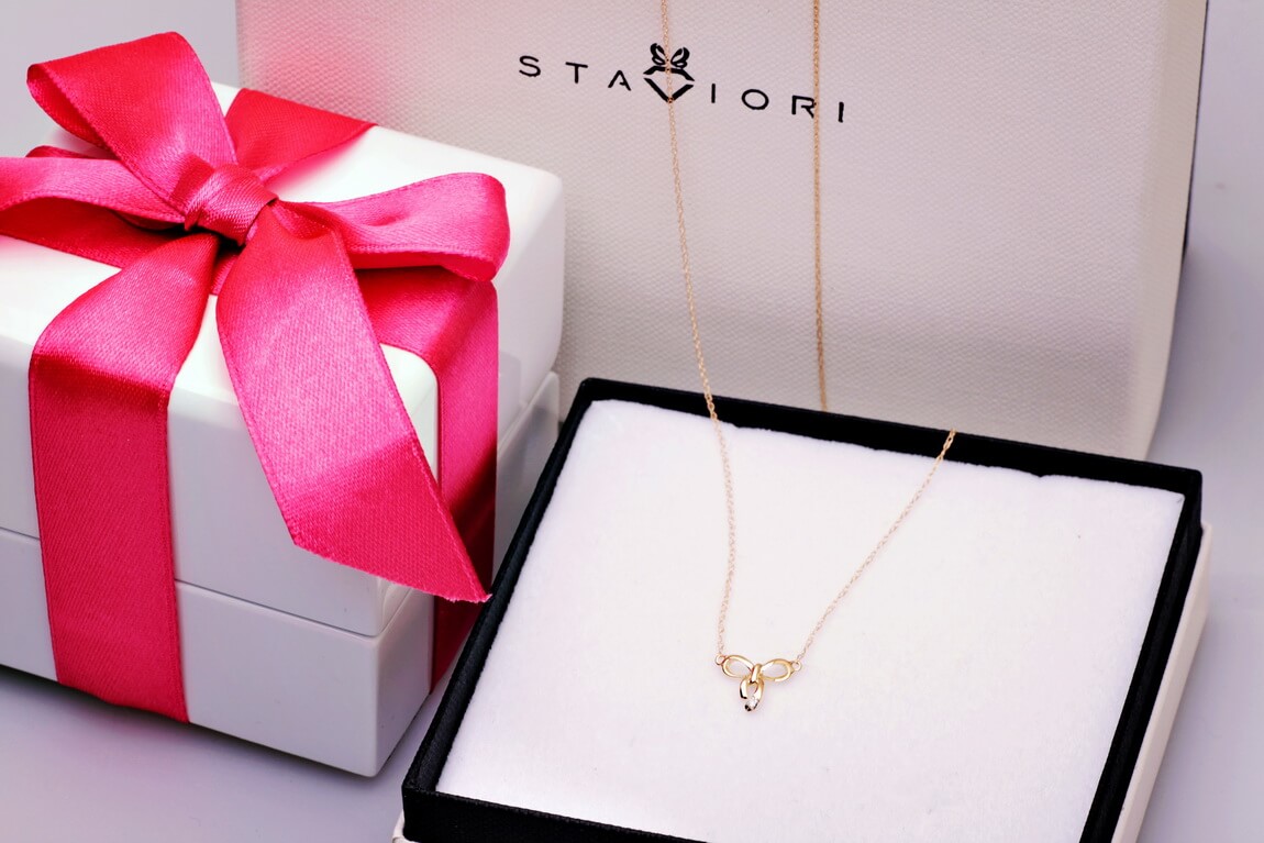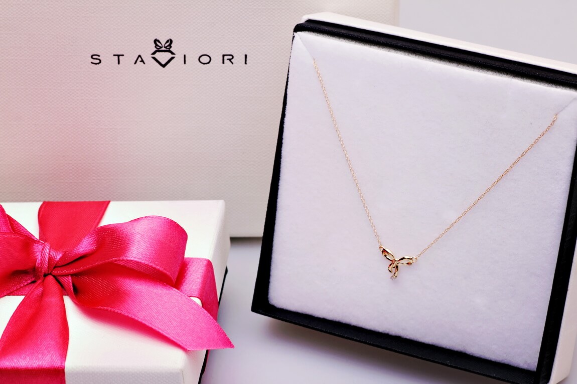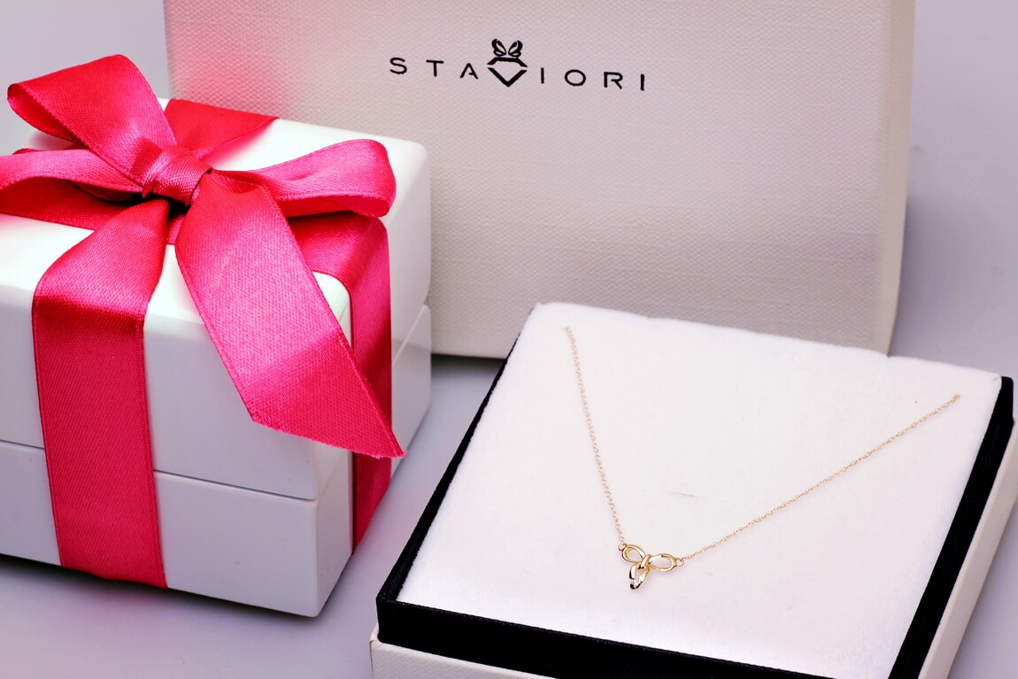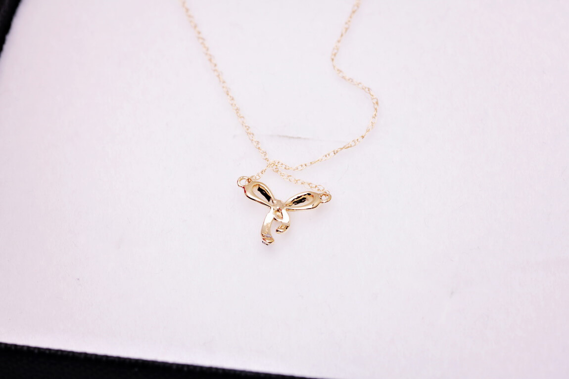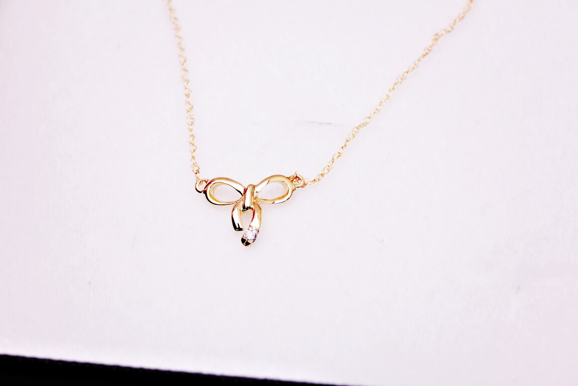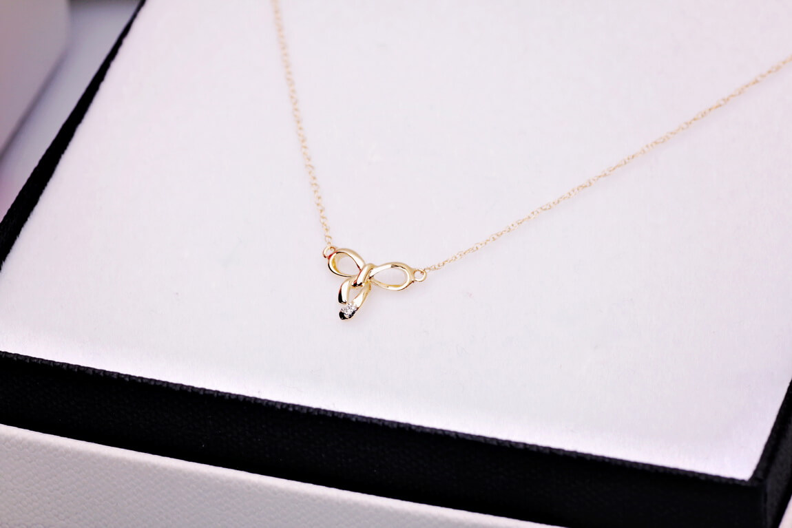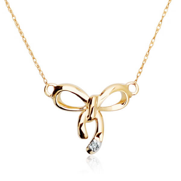 Naszyjnik złoty z brylantami w kształcie kokardki