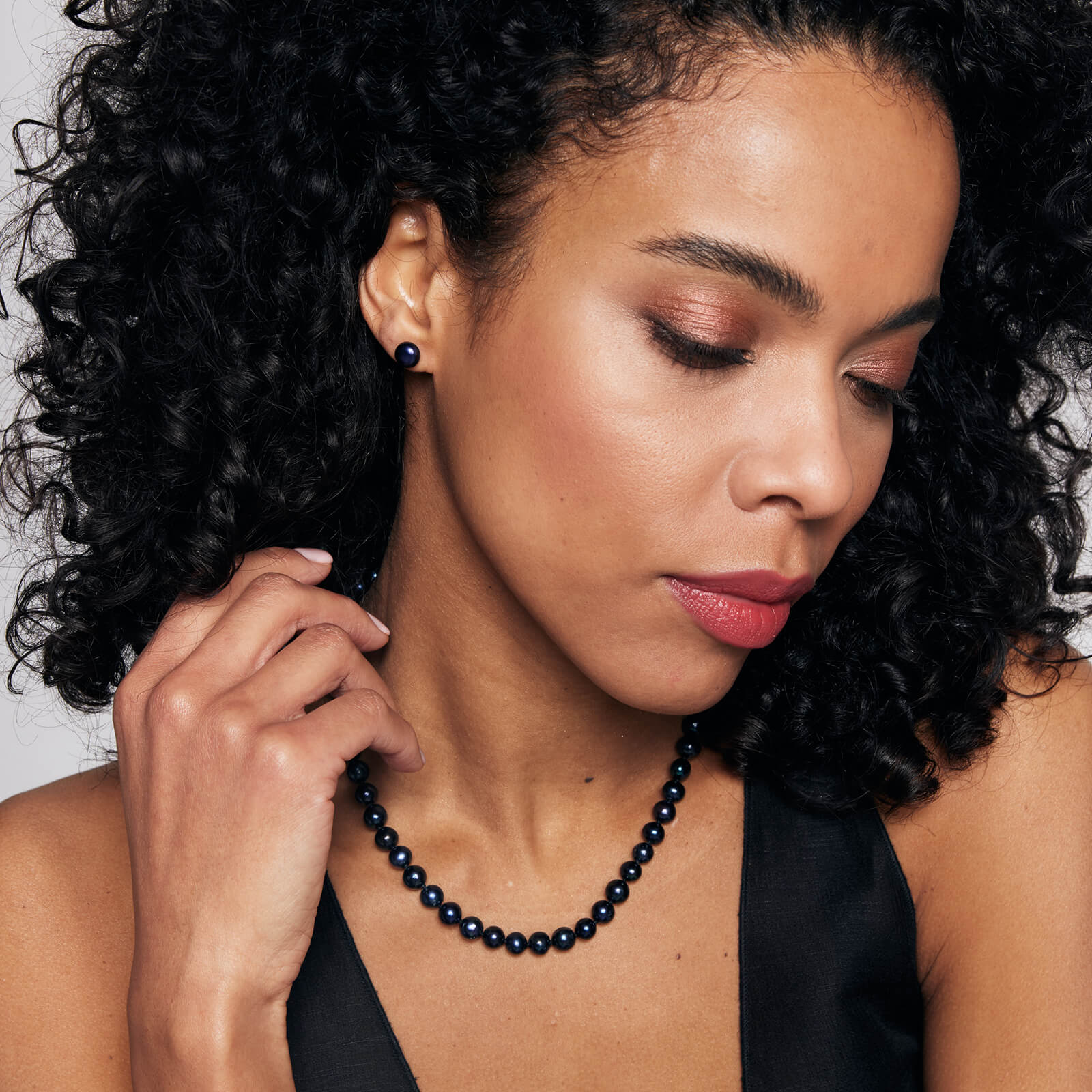 Srebrne kolczyki z czarnymi perłami 8mm – KSN4315