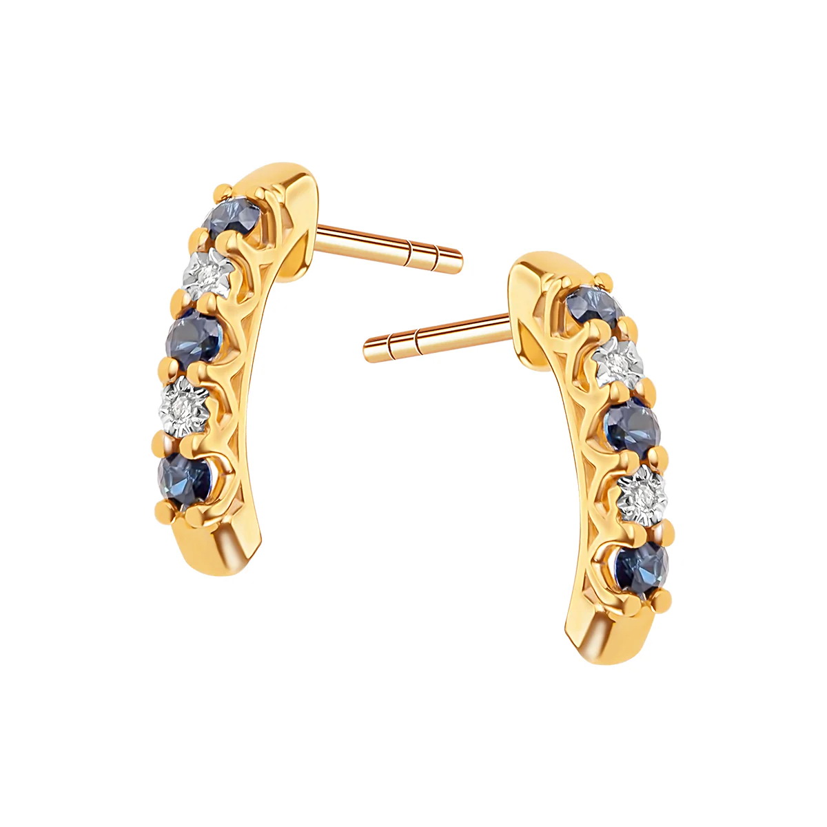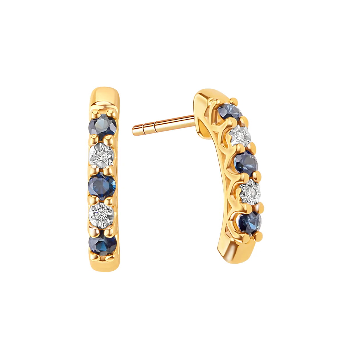 Piękne delikatne kolczyki z diamentami i szafirami w złocie 333 | KX21292S