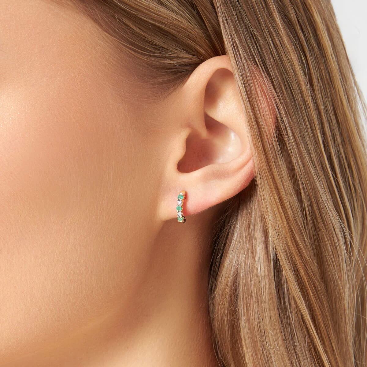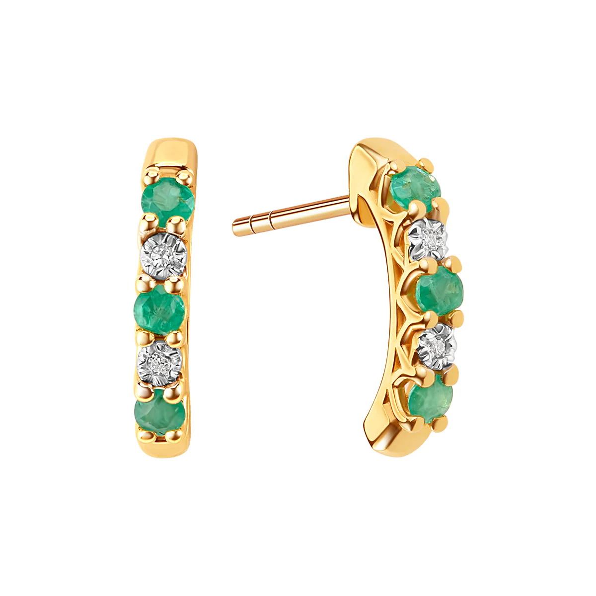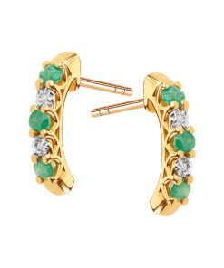 Wyjątkowe kolczyki wykonane z żółtego złota próby 333, które zachwycają szlachetnym połączeniem barw. Na subtelnie wygiętej szynie osadzono naprzemiennie cztery diamenty o szlifie ósemkowym oraz sześć intensywnie zielonych szmaragdów o łącznej masie 0,15 ct. To zestawienie tworzy niezwykle efektowną kompozycję, która emanuje luksusem i klasycznym szykiem. Wysoka jakość kamieni szlachetnych została potwierdzona prestiżowym Certyfikatem Verona, co czyni tę biżuterię idealnym wyborem na prezent dla kobiety ceniącej wyrafinowane dodatki.
