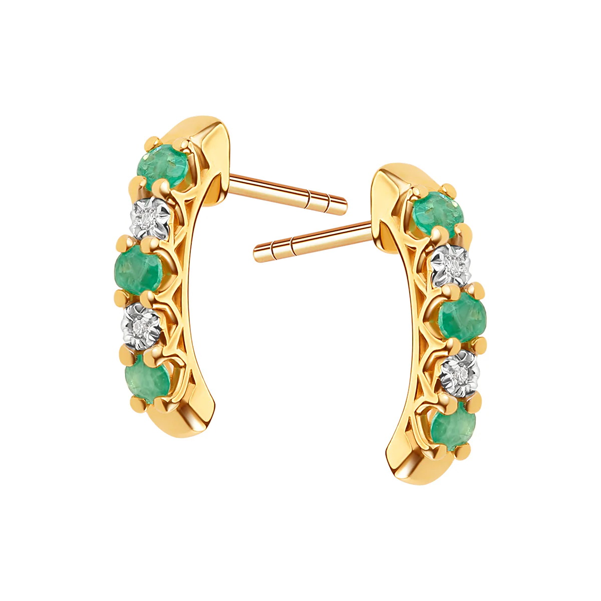 Piękne delikatne kolczyki z diamentami i szmaragdami w złocie 333 | KX21292E