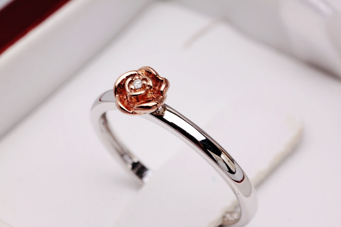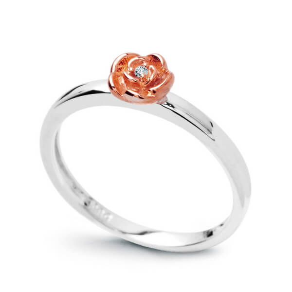 pierścionek różyczka z białego złota z diamentem