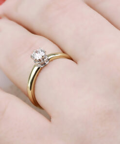 Exclusive | piękny zaręczynowy z brylantem 0,25ct G/Si1 w 6 łapkach i 18-karatowym złocie