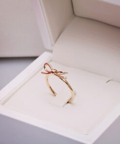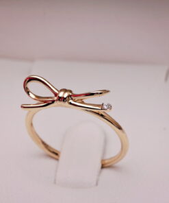 Staviori | pierścionek kokardka z żółtego złota z diamencikiem