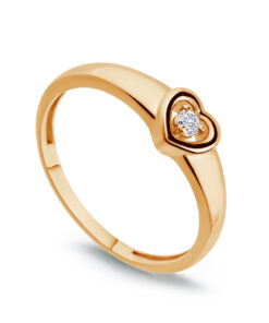 Romantyczny pierścionek zaręczynowy wykonany z żółtego złota próby 585, ozdobiony subtelnym diamentem o masie 0,04 ct. Delikatny kamień osadzony w sercu symbolizuje miłość i oddanie, czyniąc ten model idealnym wyborem na wyjątkowe zaręczyny. Prosty, a zarazem niezwykle urokliwy wzór, który podkreśla emocje i elegancję w najczystszej formie.