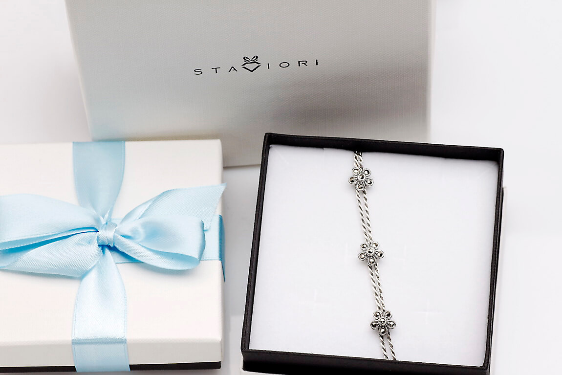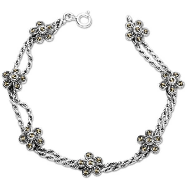 Srebrna bransoletka markazytowa – kwiatki – BDM4107