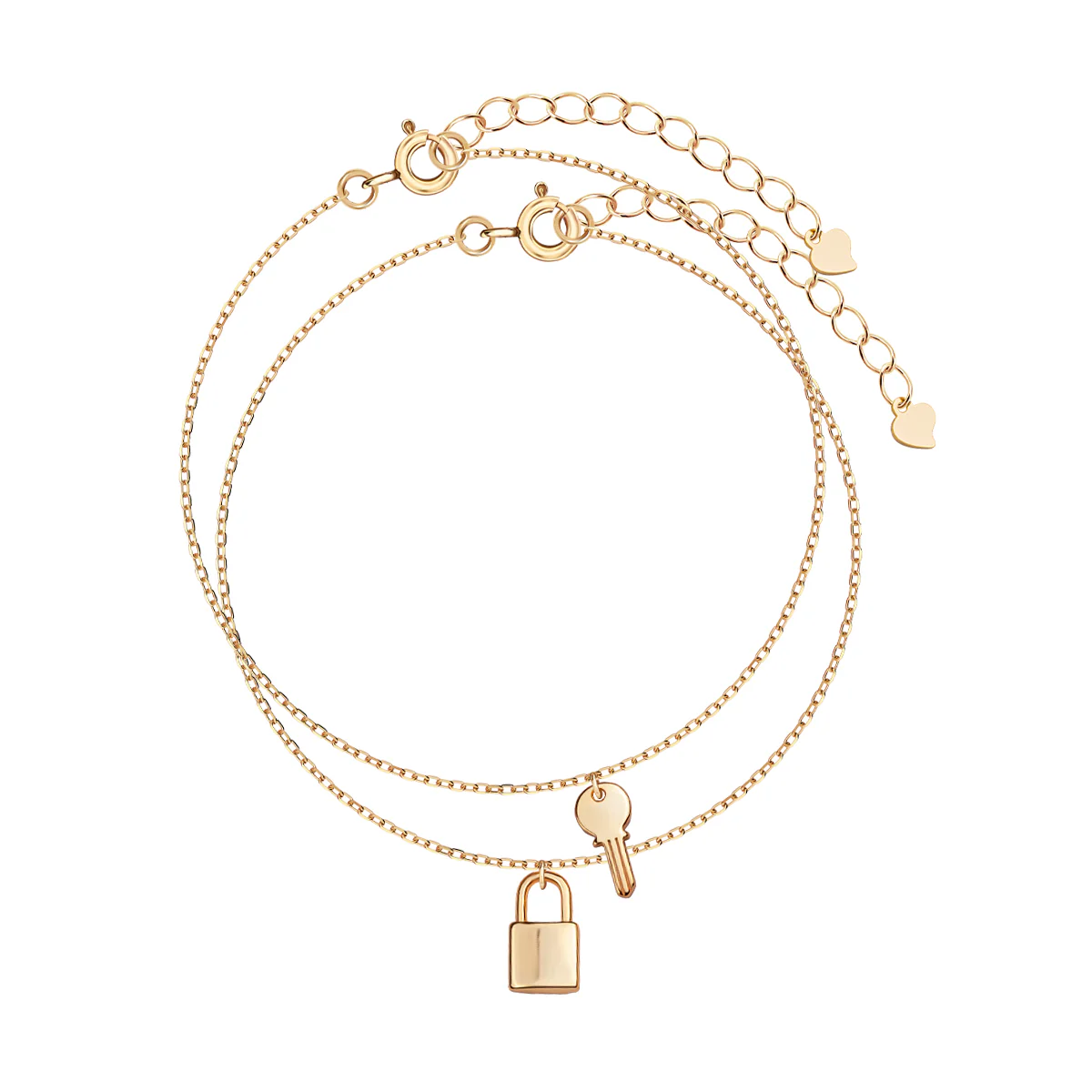 Srebrny pozłacany zestaw dwóch bransoletek – kluczyk i kłódka BSC6453Y