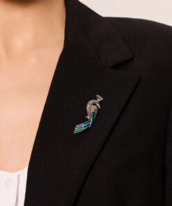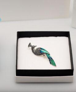 Elegancka broszka w kształcie pawia, wykonana ze srebra próby 0,925. Skrzy się blaskiem markazytów, a intensywna emalia w odcieniach zieleni i błękitu podkreśla majestatyczny charakter ptaka. Subtelne detale dodają jej artystycznego wyrazu, sprawiając, że biżuteria ta przyciąga spojrzenia i nadaje stylizacji wyjątkowego charakteru. Idealna zarówno na co dzień, jak i do eleganckich kreacji.