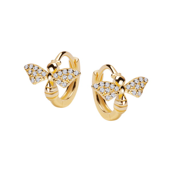 Kolczyki srebrne pozłacane pszczoła z cyrkoniami