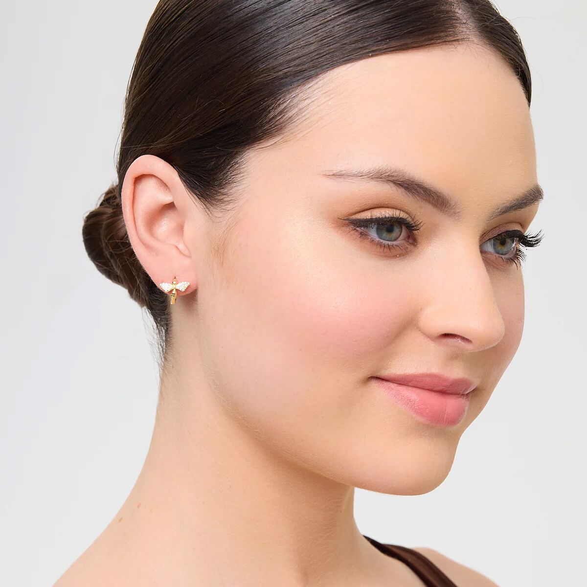 Urocze kolczyki srebrne pozłacane w kształcie pszczółki, ozdobione błyszczącymi cyrkoniami. Subtelne i jednocześnie pełne blasku, stanowią wyjątkowy dodatek, który podkreśli lekkość i wdzięk każdej stylizacji. Idealne dla osób ceniących sobie delikatną biżuterię o oryginalnym charakterze.