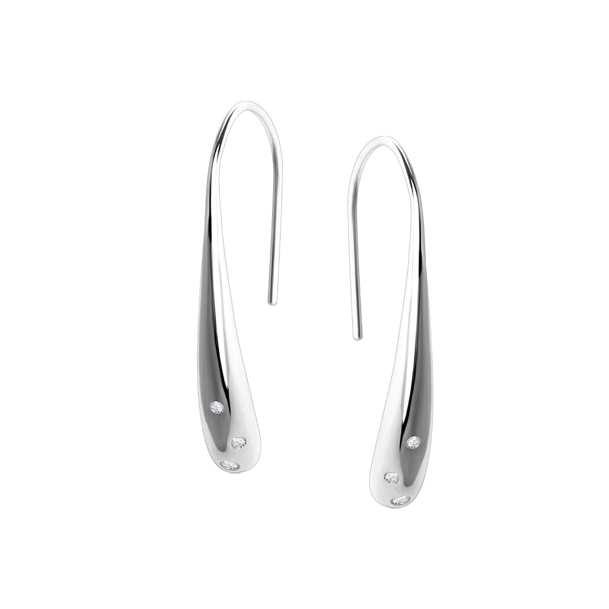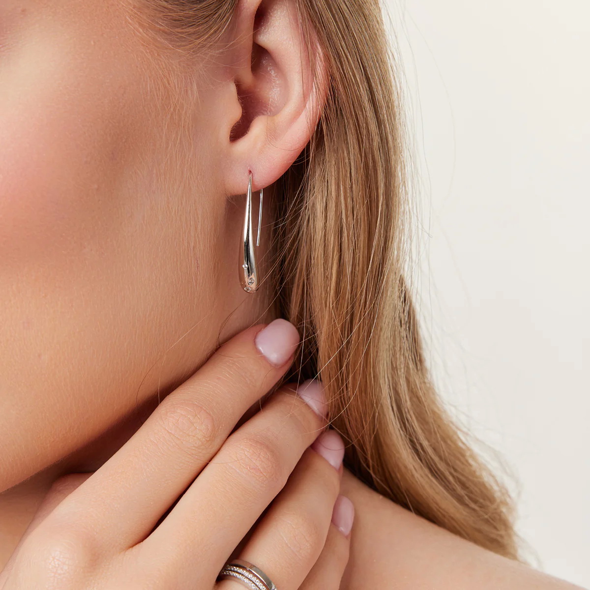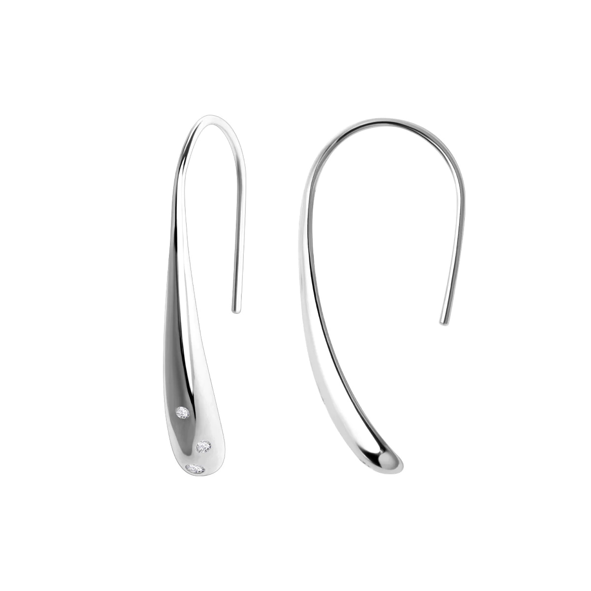 Nowoczesne kolczyki z rodowanego srebra próby 0,925, o eleganckim, wydłużonym kształcie, który z gracją opływa kontur twarzy. Trzy subtelnie osadzone cyrkonie dodają im wyrafinowanego blasku i lekkości. Idealne dla kobiet ceniących prostotę z nutą luksusu. To doskonała propozycja zarówno do pracy, jak i na wieczorne wyjścia – ponadczasowa biżuteria, która nigdy nie wychodzi z mody.