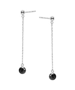 Subtelne i pełne wdzięku kolczyki wiszące wykonane z rodowanego srebra próby 0,925, zakończone fasetowanymi kulkami z naturalnego agatu. Delikatny łańcuszek nadaje biżuterii lekkości i eleganckiego ruchu, pięknie podkreślając linię szyi. To doskonały wybór dla kobiet ceniących minimalistyczny styl z nutą tajemniczości i klasy.