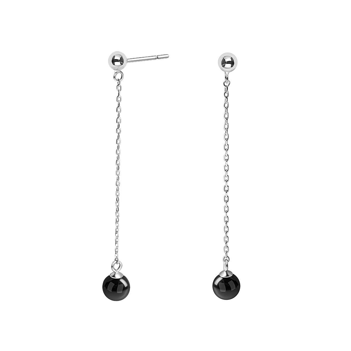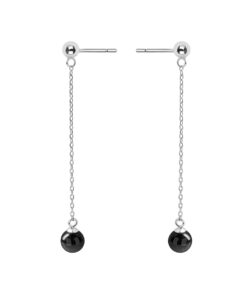 Srebrne stylowe wiszące kolczyki z czarnym agatem – KDK6600L