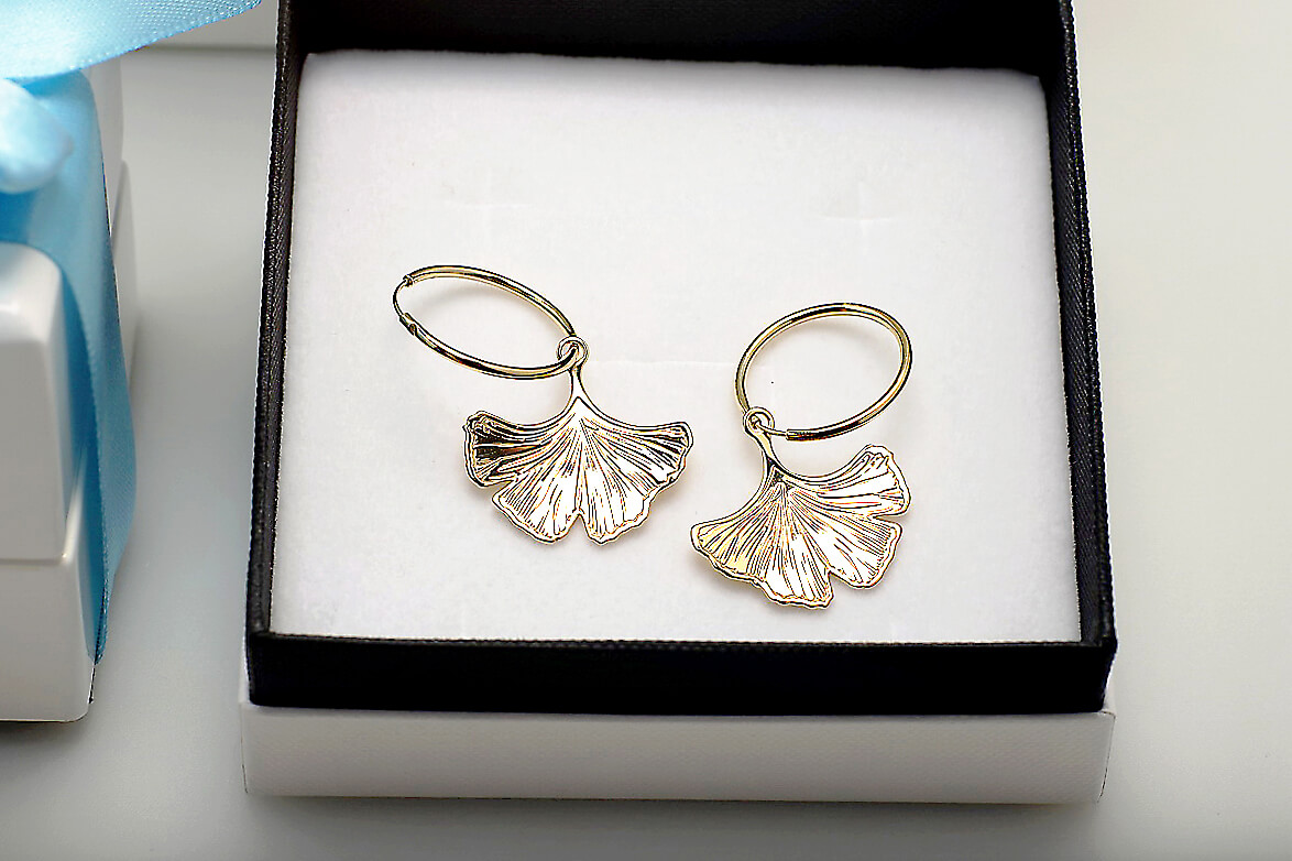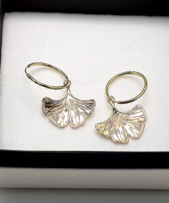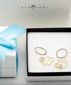 Delikatne kolczyki w kształcie liści miłorzębu, wykonane ze srebra próby 925 pokrytego żółtym złotem. Ich wyjątkowy, roślinny motyw symbolizuje harmonię i długowieczność, a forma lekkich kółek z subtelnymi zawieszkami nadaje całości naturalnego wdzięku. Doskonałe dla miłośniczek biżuterii inspirowanej naturą oraz eleganckiej prostoty. Sprawdzą się zarówno na co dzień, jak i jako oryginalny dodatek do wyjątkowych stylizacji.