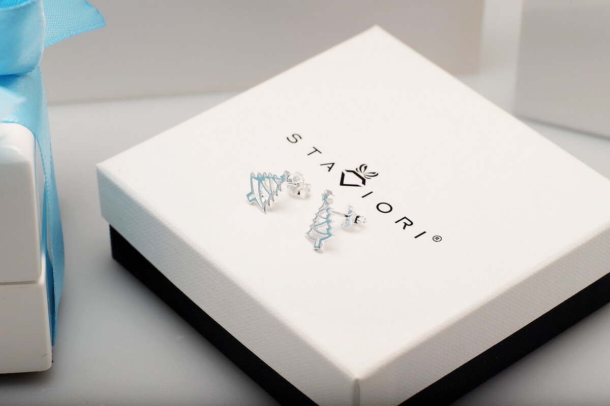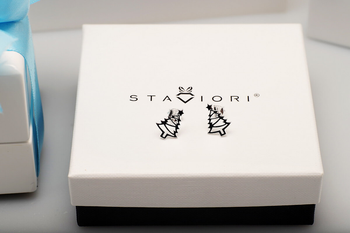 Urocze kolczyki w kształcie choinki, wykonane ze srebra próby 0,925. Delikatny, świąteczny motyw sprawia, że są idealnym dodatkiem na zimowy czas – zarówno do codziennych stylizacji, jak i na wyjątkowe okazje. Zapinane na wygodny sztyft, pięknie podkreślą radosny charakter świąt.
