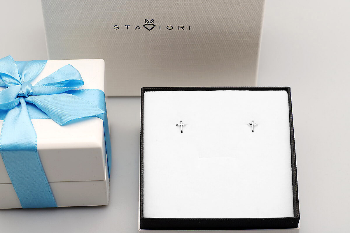 Delikatne srebrne kolczyki w kształcie krzyżyka, wykonane ze srebra próby 0,925. Ponadczasowy symbol wiary i nadziei, który sprawdzi się zarówno jako subtelny dodatek na co dzień, jak i wyjątkowa biżuteria na uroczyste okazje. Prosta forma podkreśla elegancję i duchowy charakter.