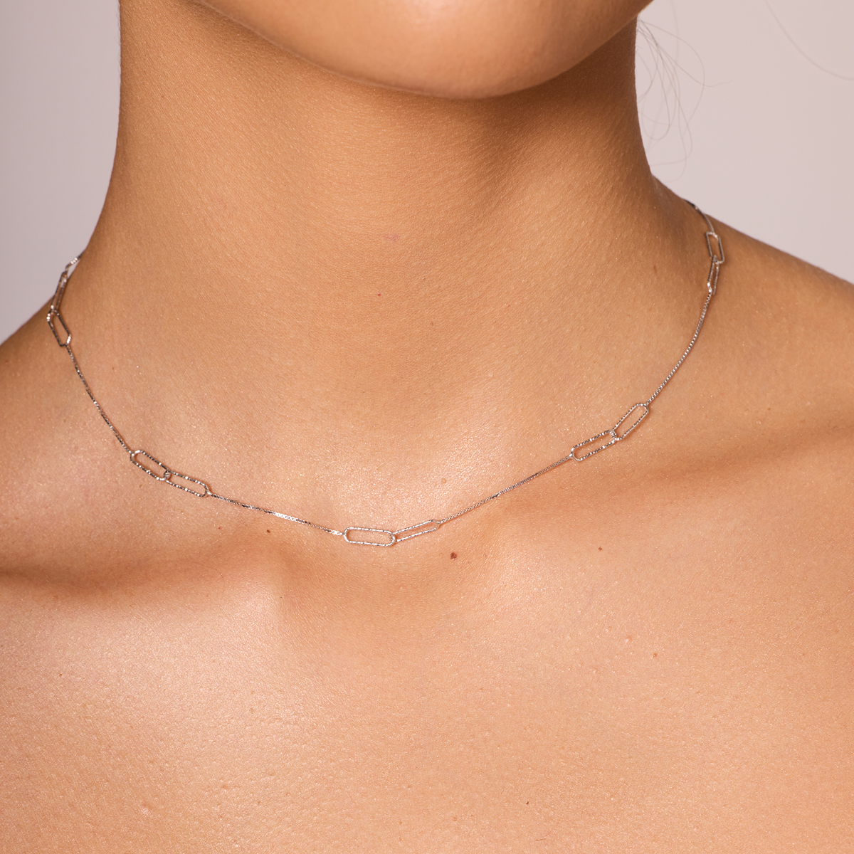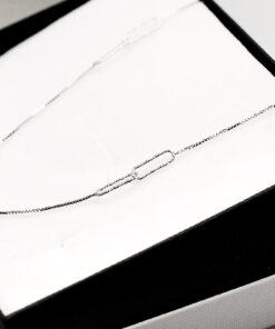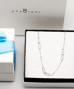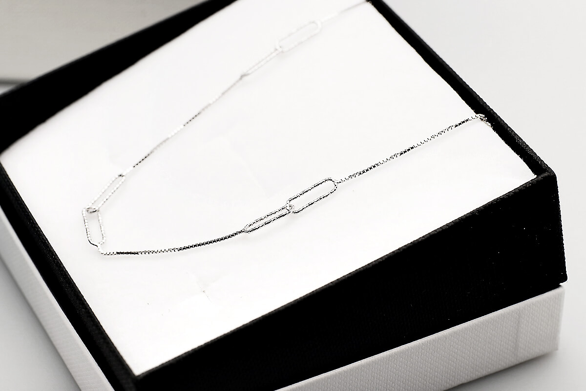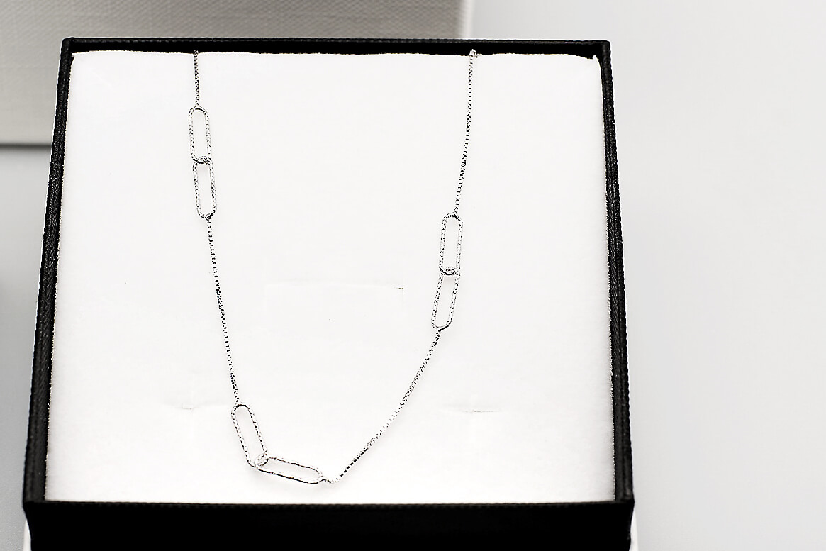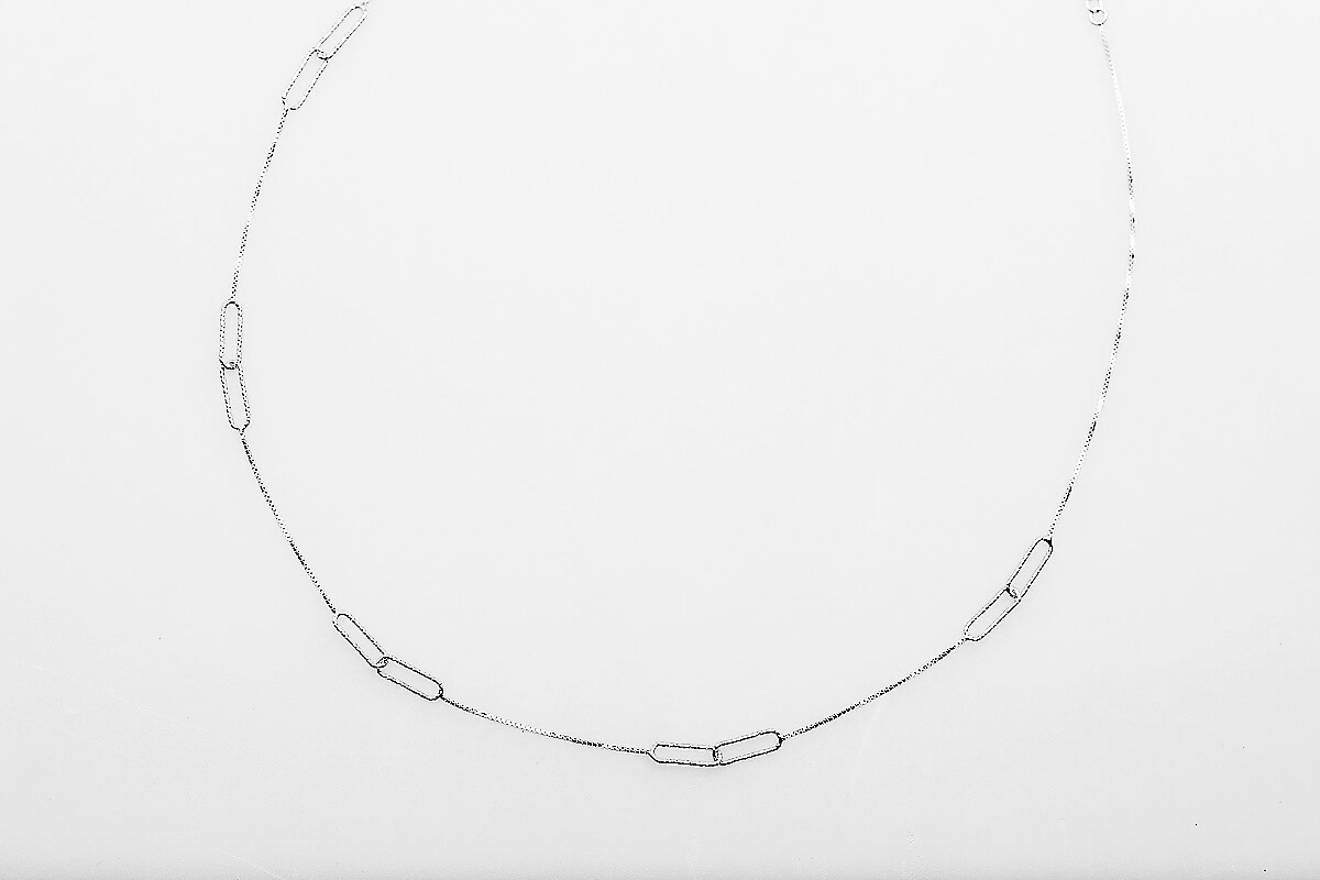 Delikatny naszyjnik o długości 45 cm, wykonany ze srebra próby 0,925. Smukły 4 mm łańcuszek z możliwością regulacji długości od 40 do 45 cm subtelnie podkreśla linię dekoltu, dodając stylizacji minimalistycznego i eleganckiego charakteru. Idealny zarówno do codziennych, jak i wieczorowych zestawień.