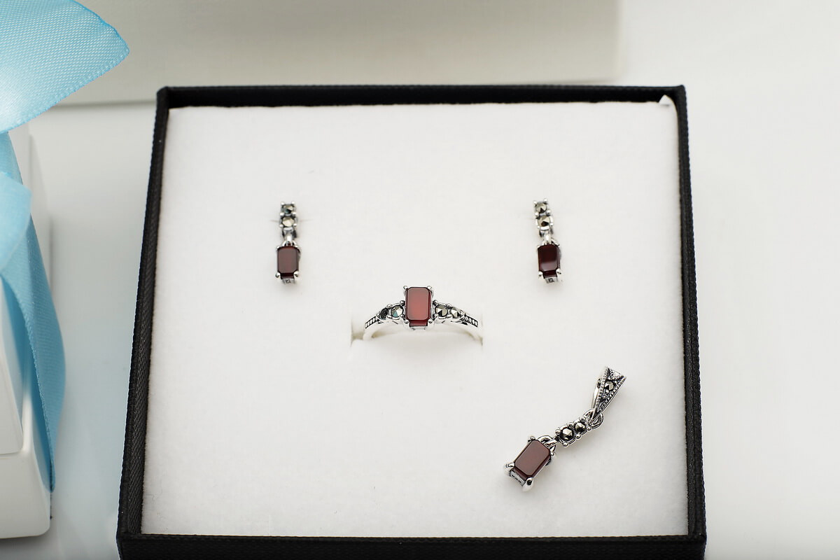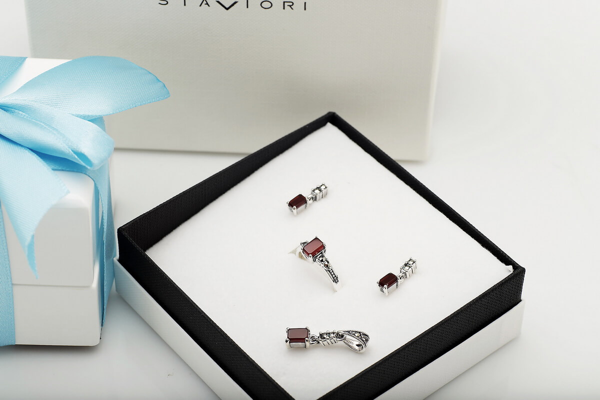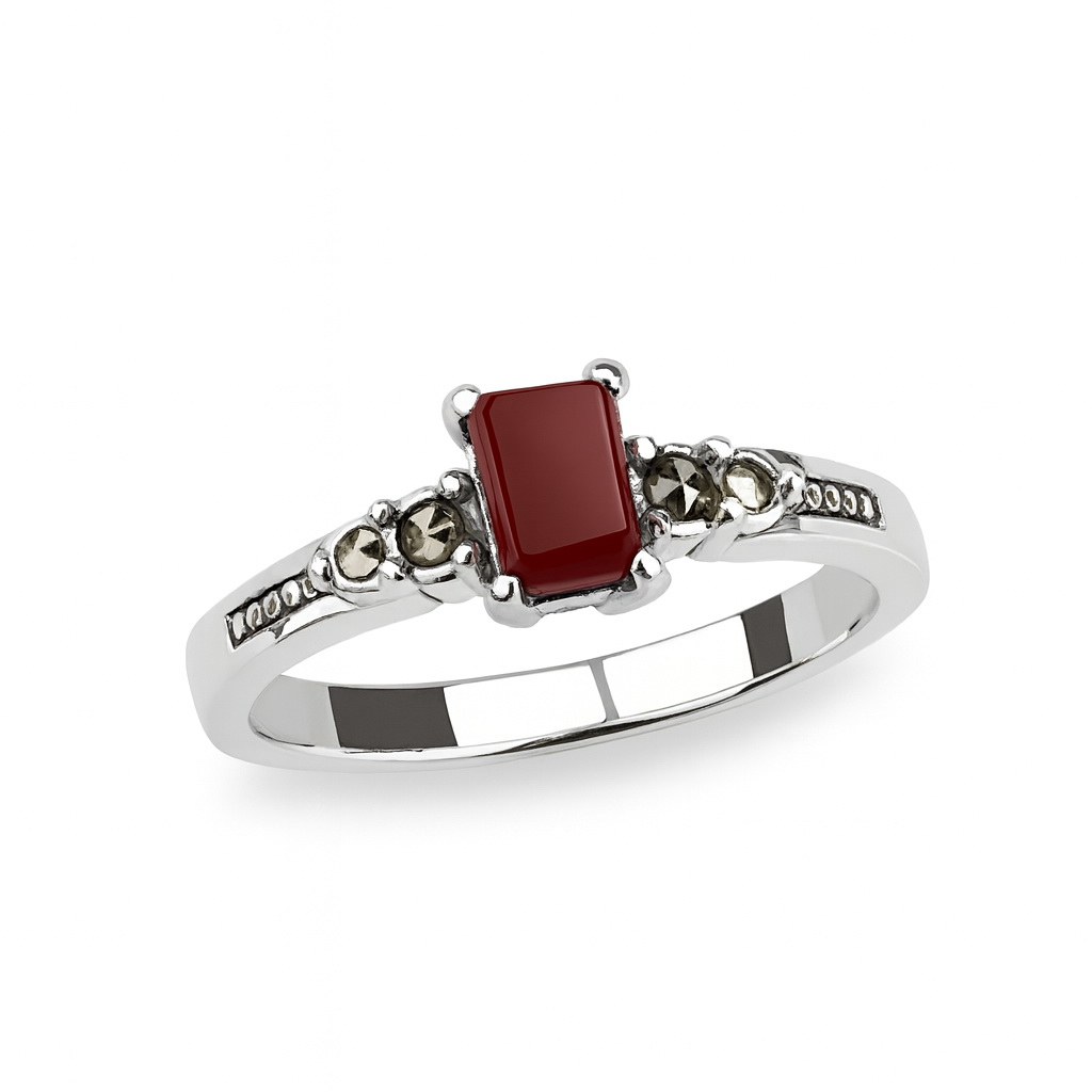 Srebrny pierścionek z czerwonym agatem i markazytami PDM5940