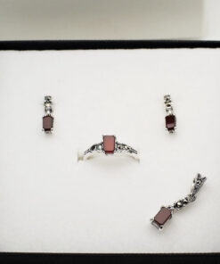 Subtelny pierścionek ze srebra próby 0,925, ozdobiony głębokozielonym agatem w owalnym kształcie, otoczonym połyskującymi markazytami. Klasyczna forma i misterne detale nadają mu elegancki, lekko retro charakter. Doskonale sprawdzi się jako wyjątkowy akcent codziennych i wieczorowych stylizacji. Dostępne również kolczyki i wisiorek do kompletu – można stworzyć piękny zestaw.