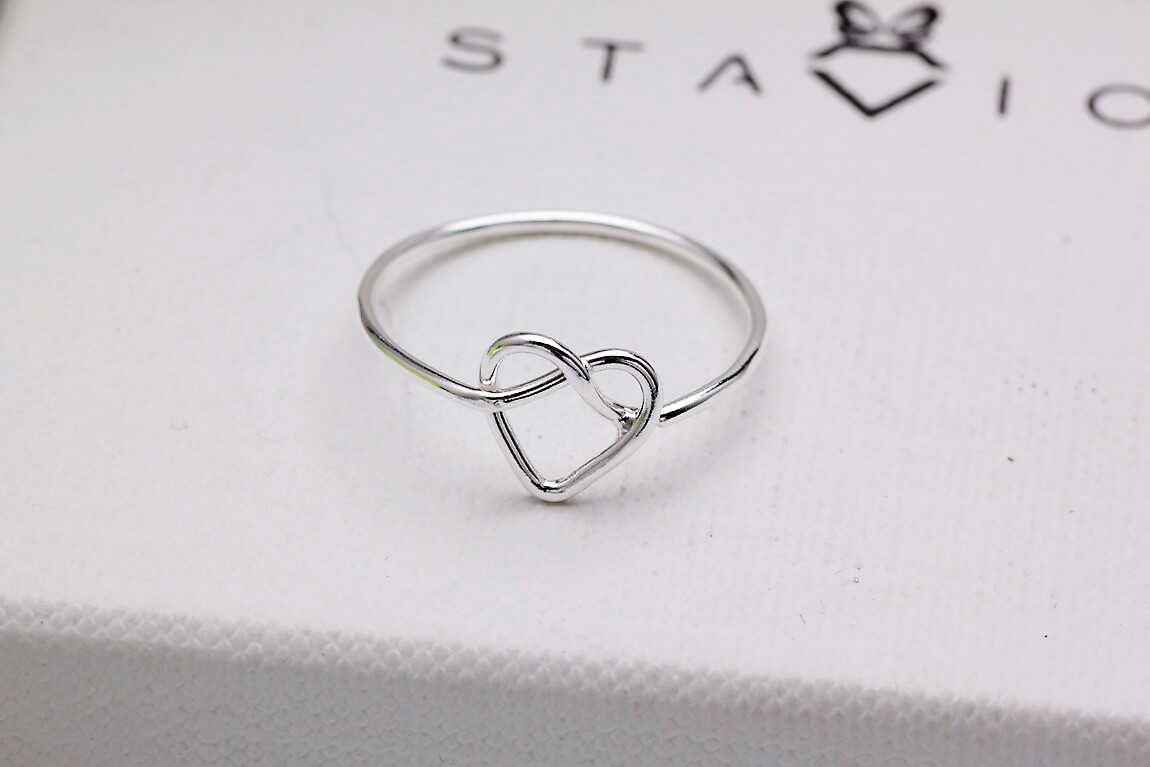 delikatny srebrny pierścionek serce