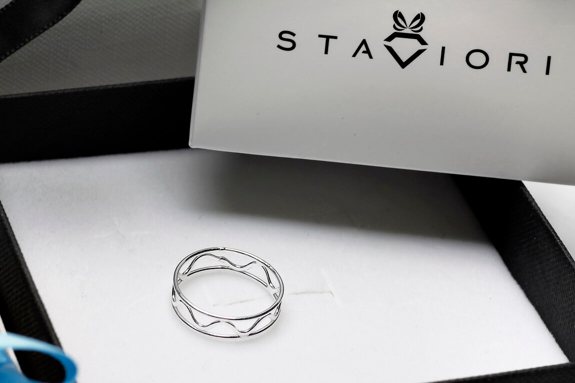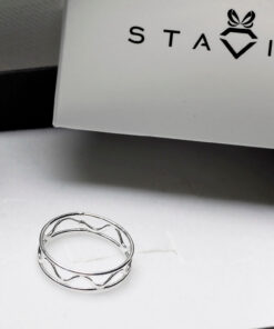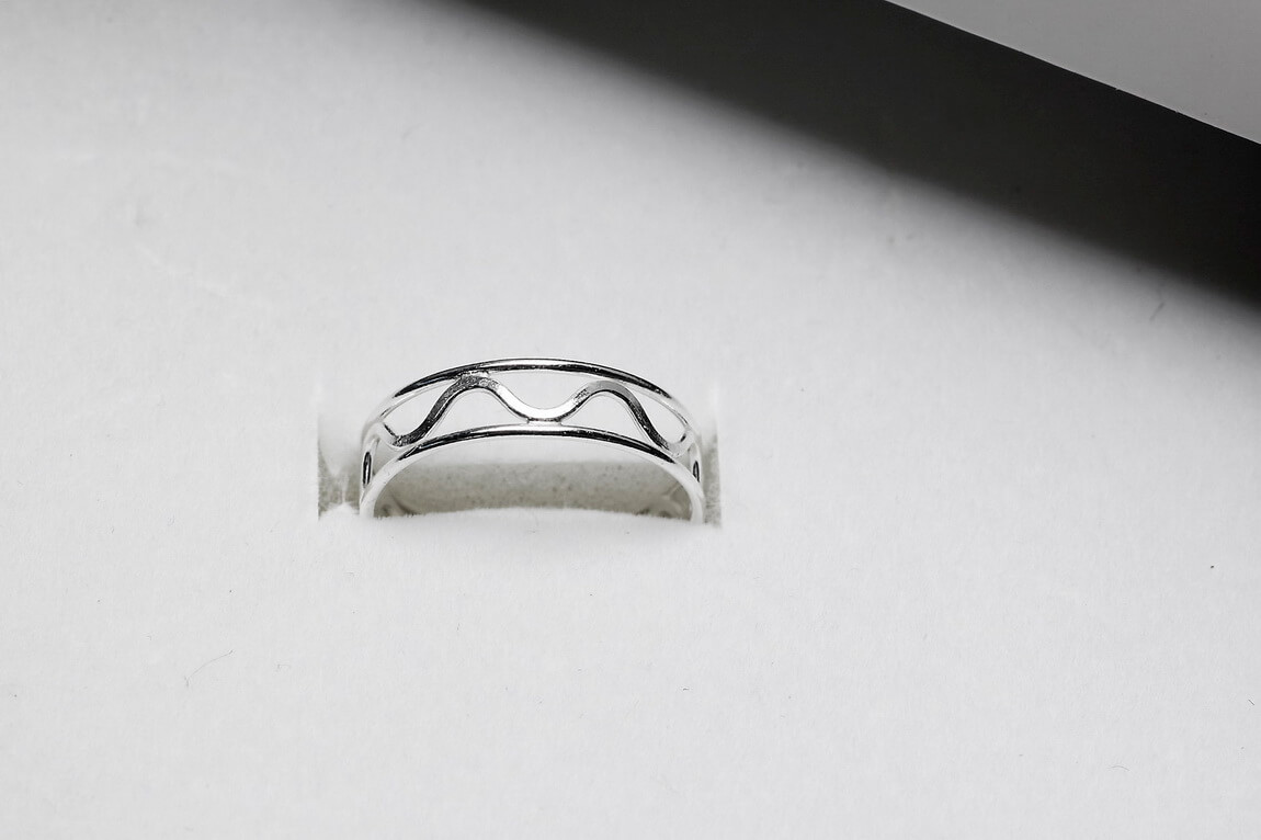 Delikatny srebrny pierścionek o szerokości 4 mm, wykonany z wysokiej jakości srebra próby 0,925. Ażurowy wzór z falującymi liniami nadaje mu lekkości i subtelnego uroku. Idealny wybór dla osób, które cenią eleganckie, a zarazem nowoczesne dodatki biżuteryjne.