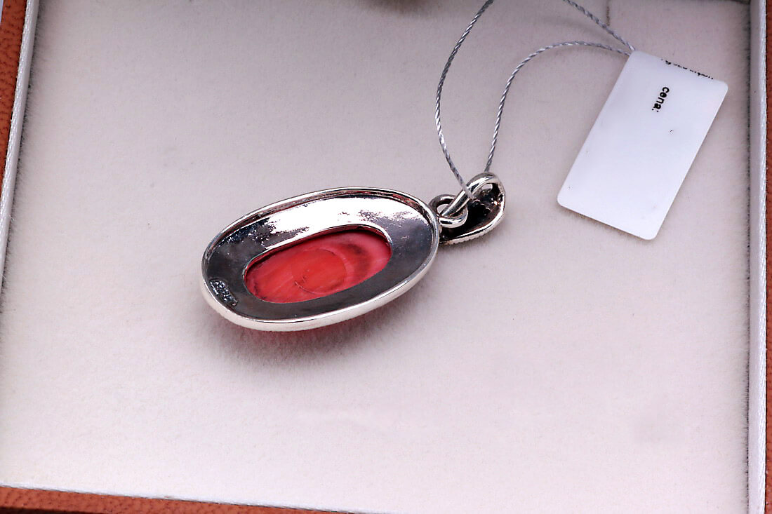Srebrny wisiorek z koralem i markazytami
