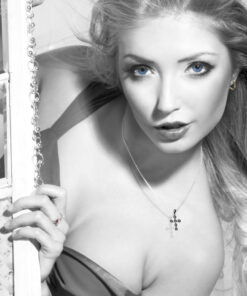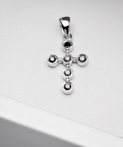 Exclusive | Krzyżyk z białego złota 750 z czarnymi diamentami