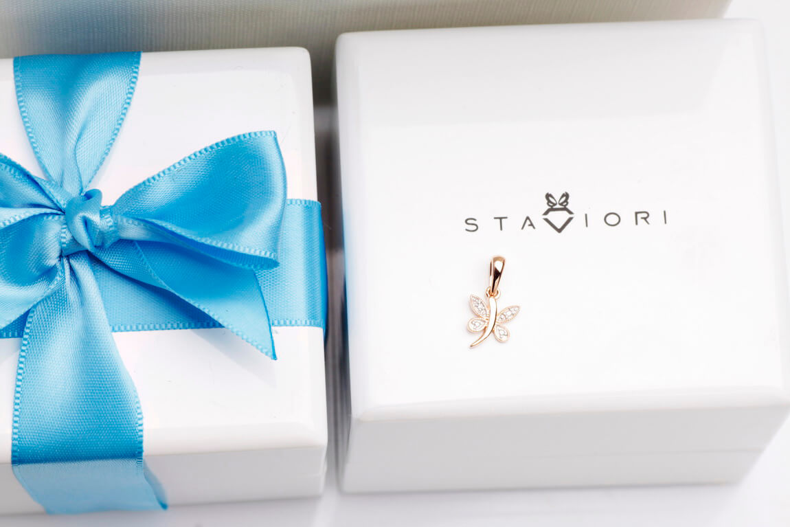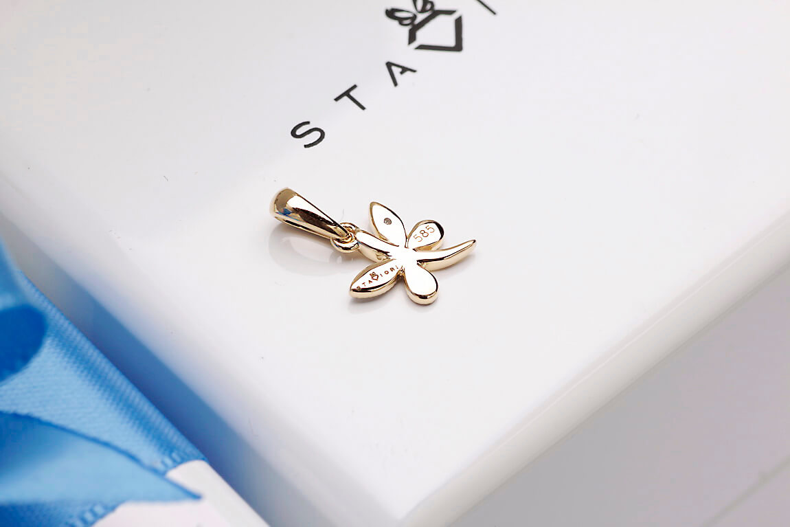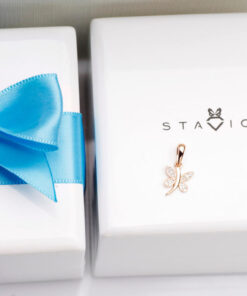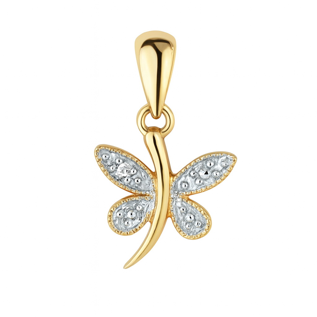 Uroczy wisiorek w kształcie motyla wykonany z połączenia żółtego i białego złota próby 0,585. Delikatne skrzydełka zdobi subtelny diament w szlifie achtkant, który dodaje całości blasku i elegancji. Symbol lekkości, wolności i piękna – ten wisiorek to idealny wybór dla kobiety, która pragnie podkreślić swoją subtelność i wdzięk.