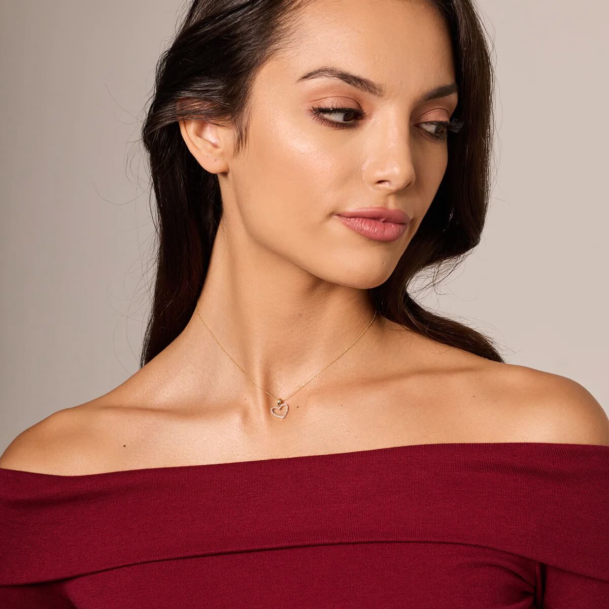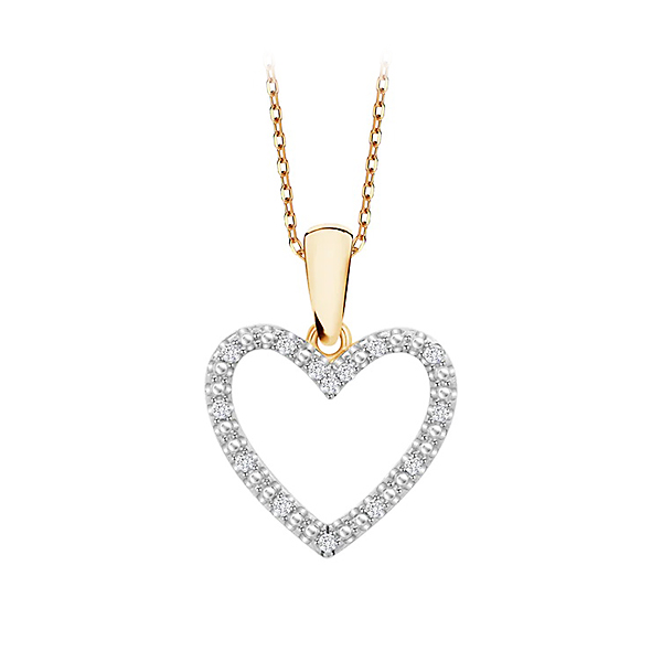 Uroczy wisiorek w kształcie serca, wykonany z żółtego złota próby 0,333, to delikatna i pełna blasku ozdoba. Lśniące diamenty o łącznej masie 0,03 ct podkreślają romantyczny charakter zawieszki, czyniąc ją idealnym prezentem dla ukochanej osoby. Subtelny i kobiecy design sprawdzi się zarówno na co dzień, jak i na wyjątkowe okazje.
