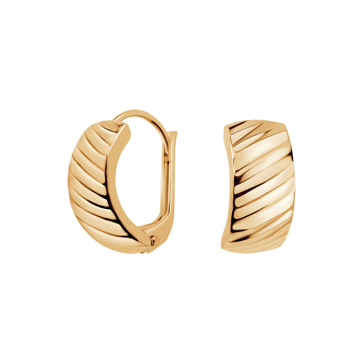 Subtelne kolczyki wykonane z żółtego złota próby 333, które zachwycają swoją klasyczną, półokrągłą formą. Ich powierzchnia została poddana precyzyjnemu diamentowaniu, dzięki czemu biżuteria przepięknie mieni się przy każdym ruchu, imitując blask drogocennych kamieni. Wyposażone w wygodne i bezpieczne zapięcie typu bigiel, stanowią idealny wybór dla kobiet ceniących ponadczasową elegancję. To doskonały dodatek, który rozświetli zarówno codzienną stylizację, jak i wieczorową kreację.