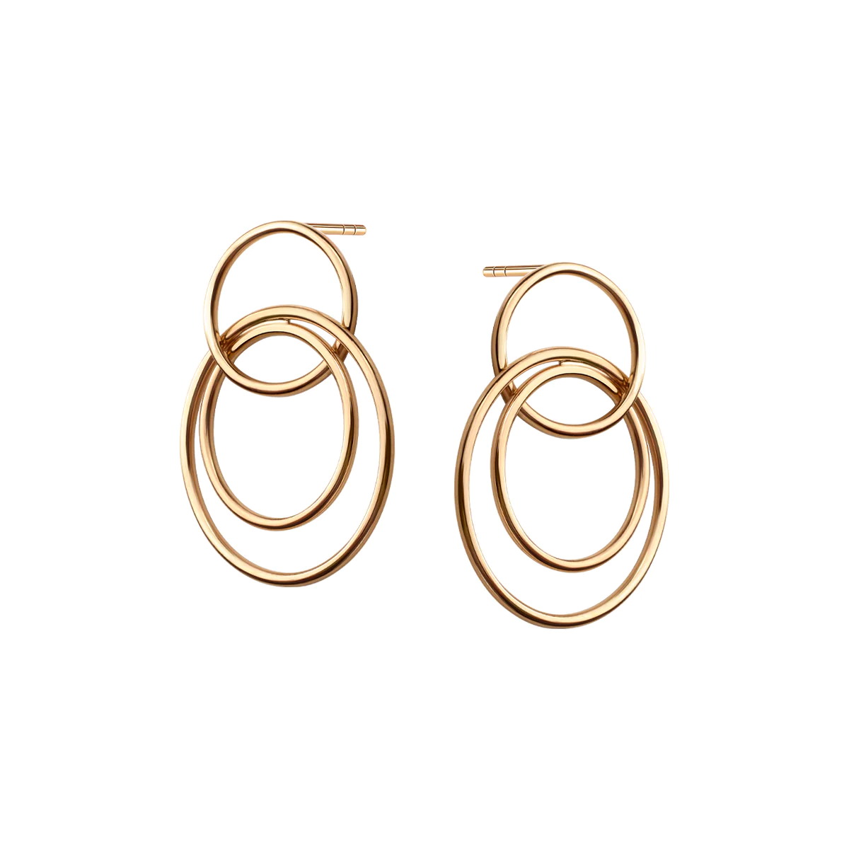 Nowoczesne kolczyki z żółtego złota próby 0,333 o intrygującej formie trzech połączonych kół to wyrazisty dodatek dla kobiet lubiących odważne akcenty. Geometryczny design i połyskliwa powierzchnia tworzą harmonijną całość, która przyciąga spojrzenia. Idealne do stylizacji z charakterem – zarówno na dzień, jak i na wieczór.