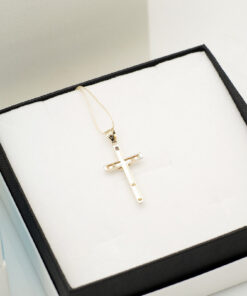 Klasyczny krzyżyk wykonany z żółtego złota próby 0,333, z wizerunkiem Chrystusa w białym odcieniu. Precyzyjne detale oraz kontrastowe wykończenie nadają mu wyjątkowego charakteru i głębokiego znaczenia. To ponadczasowy symbol wiary, który doskonale sprawdzi się jako duchowy prezent na ważne okazje.