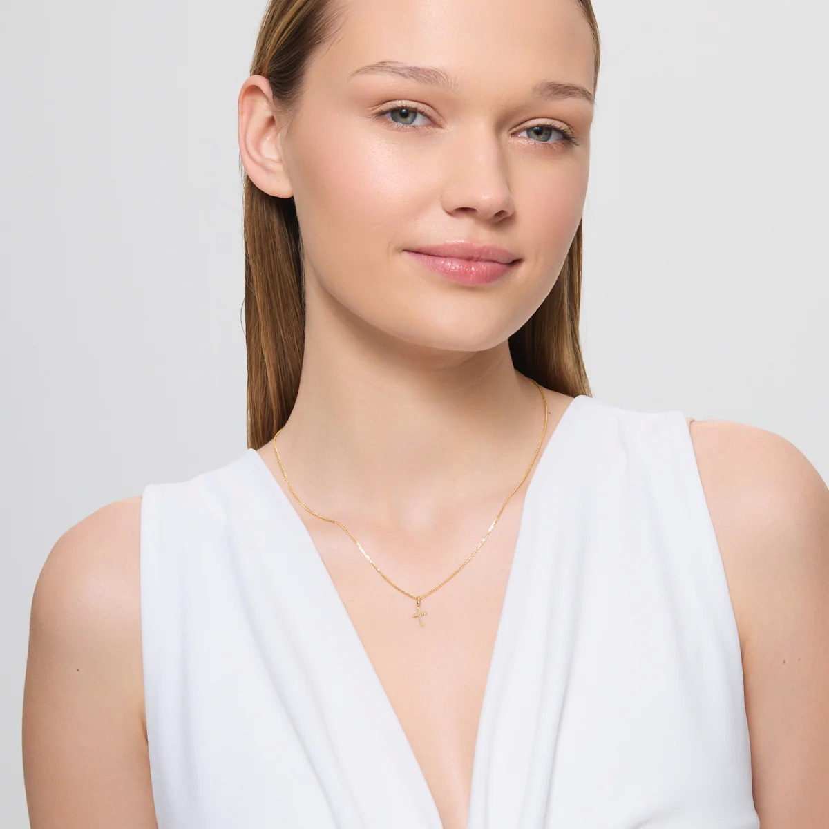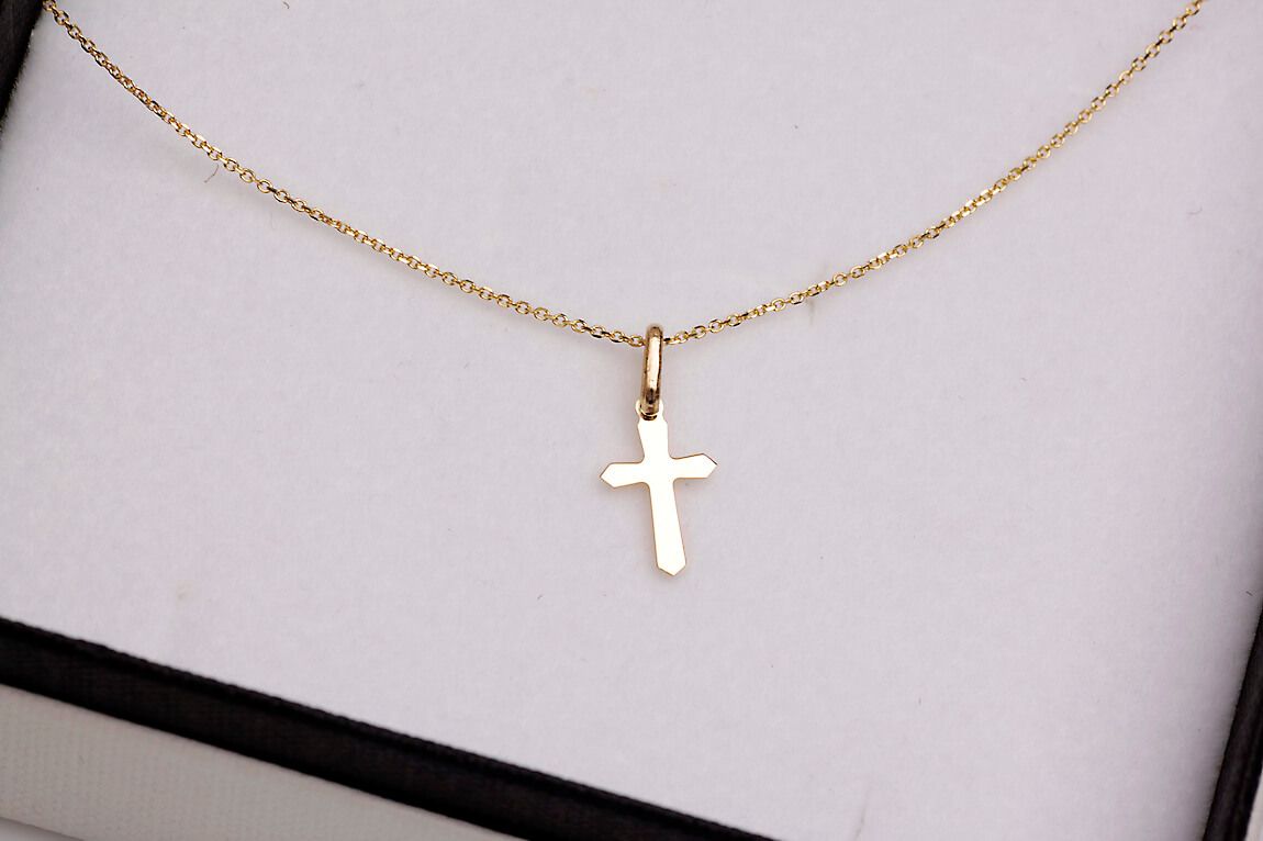 Delikatny złoty krzyżyk wykonany z żółtego złota próby 0,333 to ponadczasowy symbol wiary i subtelnej elegancji. Lekka, drobna forma o pięknie wyprofilowanych ramionach sprawia, że idealnie komponuje się zarówno z codziennymi stylizacjami, jak i bardziej uroczystymi okazjami. Ten klasyczny wzór o błyszczącym wykończeniu będzie wyjątkowym prezentem dla dziecka, nastolatki lub dorosłej osoby ceniącej minimalistyczną biżuterię. Krzyżyk zachwyca precyzją wykonania oraz ponadczasowym blaskiem złota.