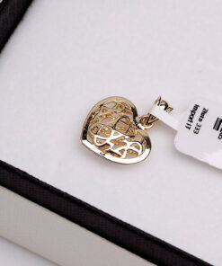 Uroczy wisiorek w kształcie serca, wykonany z połączenia żółtego i białego złota próby 0,333. Ażurowa struktura z dekoracyjnym, diamentowanym wykończeniem w białym złocie dodaje lekkości i blasku. To wyjątkowy model, który łączy elegancję z subtelnym, romantycznym akcentem – idealny na prezent pełen emocji.
