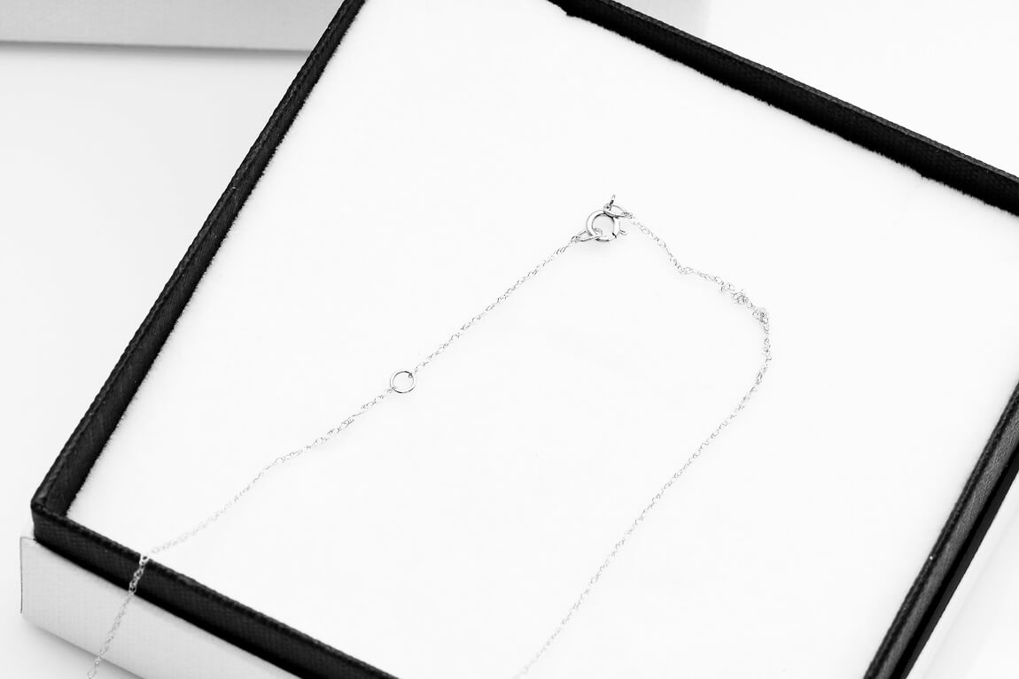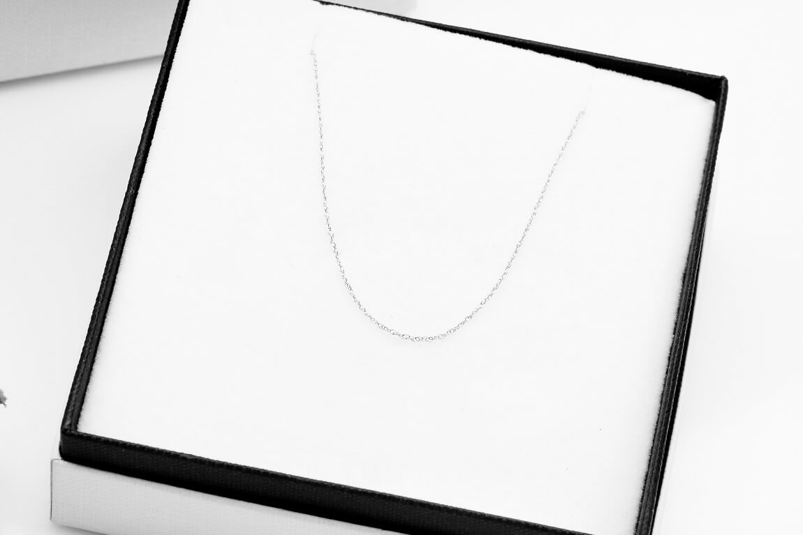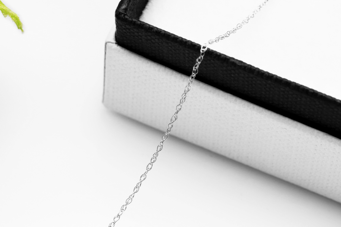 Delikatny jak mgiełka łańcuszek z białego złota próby 0,585 to klasyka, która nigdy nie wychodzi z mody. Idealnie sprawdzi się zarówno noszony solo, jak i w połączeniu z ulubioną zawieszką, podkreślając subtelny styl każdej kobiety. Jego uniwersalny charakter sprawia, że będzie doskonałym wyborem na każdą okazję.